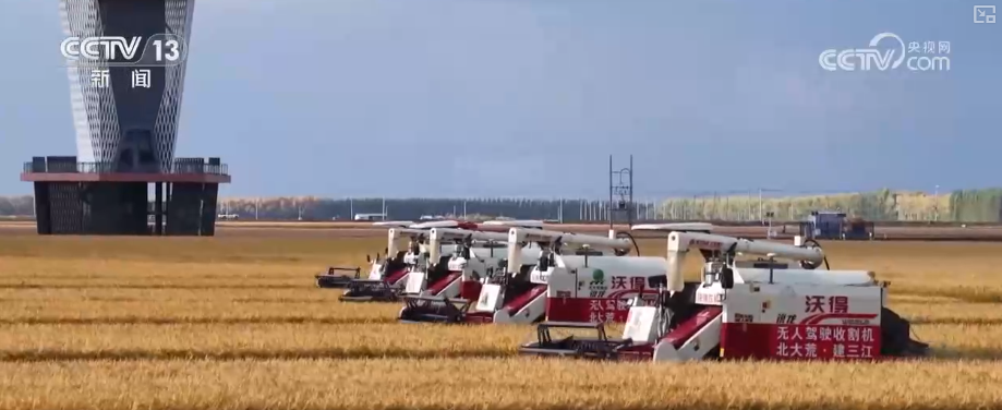 正在黑龙江北大荒建三江七星农场,无人机跟从多台无人驾驶收割机记实正正在进行中的秋收大会和。正在五常大米焦点出产,穿越机飞跃广袤郊野,稻穗编织成的“黄金毯”一目了然。稻谷被划一齐截地“吞”入农机“口中”,这个丰收季轻飘飘的收成。