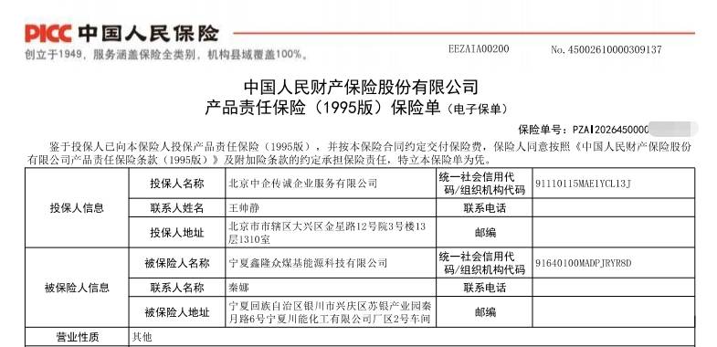本次厨安能源科技无限公司旗下大茗堂系列产物,成功通过中国人保审核,为企业全线产物承保产物义务险,证明公司产物的实正在、及格,也标记着厨安能源科技无限公司为消费者供给平安保障的决心。